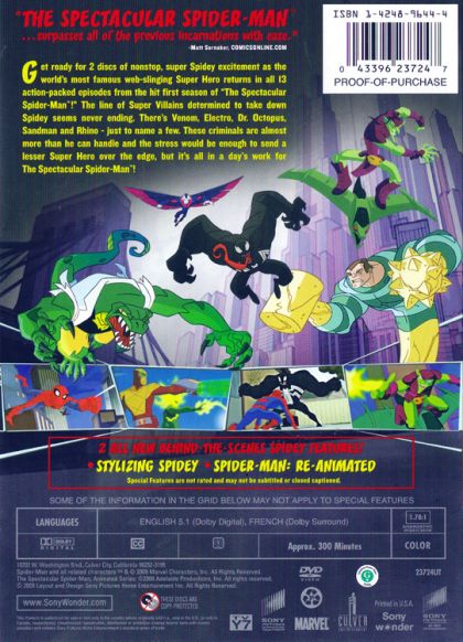 | Extras | * 2 All New behind-the-scenes Spidey Features * Stylizing Spidey * Spider-Man Re-animated |