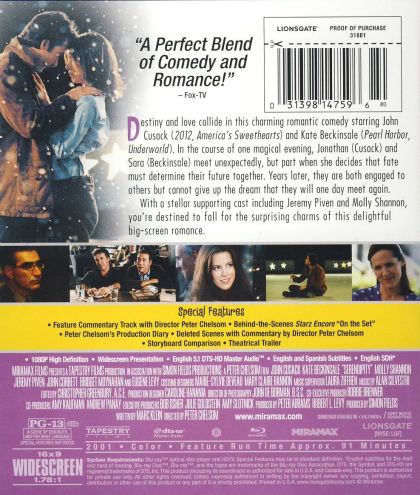 | Extras | Feature Commentary Track with Director Peter Chelsom Behind-the-Scenes Starz Encore On The Set Peter |