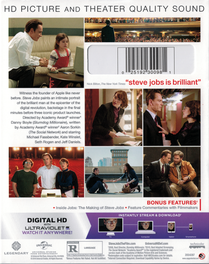 Set backstage at three iconic product launches and ending in 1998 with the unveiling of the iMac, Steve Jobs takes us behind the scenes of the digital revolution to paint an intimate portrait of the brilliant man at its epicenter.