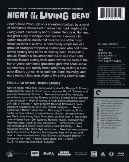 A group of people try to survive an attack of bloodthirsty zombies while trapped in a rural Pennsylvania farmhouse. Although not the first zombie film, NIGHT OF THE LIVING DEAD is the progenitor of the contemporary "zombie apocalypse" horror film, and it greatly influenced the modern pop-culture zombie archetype.
