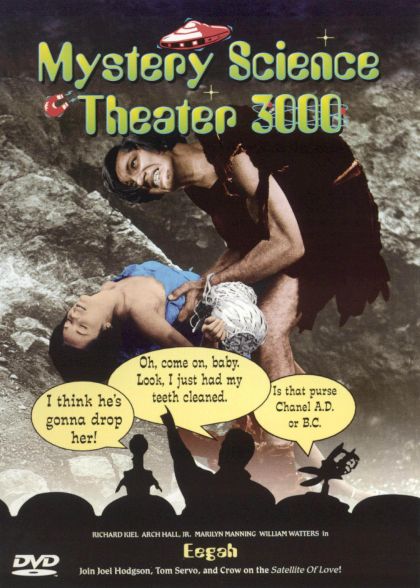 Watching Dr. Forrester replace Frank's blood with antifreeze is a lost less painful than sitting through Eegah. Richard Kiel stars in the title role as a cavemen wandering Palm Springs looking for grub and girls. When he finds beautiful Roxy, it seems every other minute he's hoisting her over his shoulder, to which Joel Hodgson comments, "She gets picked up so much she ought to have a handle." The film's hero, played by dough-faced Arch Hall, Jr., quickly becomes the butt of Joel, Crow, and especially Tom Servo's jokes, with such remarks as, "He looks like a Cabbage Patch Elvis." Even better than their wisecracking is our buddies skits, which include taking Crow's body temperature down to absolute zero and a horrifying experiment in which Joel's face is manipulated to resemble Arch Hall, Jr.'s.