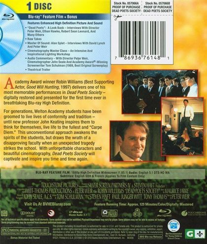 | Extras | Dead Poets: A Look Back - Interviews with Director Peter Weir, Ethan Hawke, Robert Sean Leonard and |