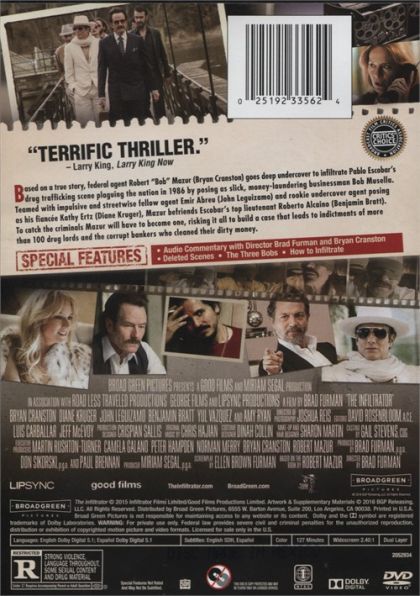 | Producer | Nicole Boccumini, Paul Brennan, Bryan Cranston, Kate Fasulo, Jess Fuerst, Brad Furman, Cam Galano, Peter Hampden, Robert How, Scott LaStaiti, Robert Mazur, Norman Merry, Jill Rachel Morris, Martin Rushton-Turner, Matt Ruskin, Miriam Segal, Don Sikorski, Paula Turnbull | |