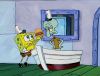 As Seen on TV: Krabs makes a low budget commercial and SpongeBob is in it for one second. After the commercial airs once at three in the morning, a blind man recognizes SpongeBob. SpongeBob's head blows up and he tells Mr. Krabs that he is going to have to quit the Krusty Krab now that he's a big famous star. Spongebob is convinced that his public needs him. When his public demands that they see him frying Krabby Patties, SpongeBob doesn't think he's anyone to deny them. He ends up cooking patties just like he always has. Can You Spare a Dime?: Squidward is fed up with Mr. Krab's insults and he quits, bragging about how easy it will be to find another job. But of course, it's not and Squidward falls upon hard times. He goes though all his savings and is dirt poor. Having no where else to turn, he asks SpongeBob if he can crash at the Pineapple for awhile, just until he gets back on his feet. SpongeBob's heart goes out to him, but soon Squidward takes advantage of SpongeBob's hospitality and becomes the house guest who has completely overstayed his welcome. SpongeBob has to beg Mr. Krabs to hire Squidward back at the Krusty Krab.