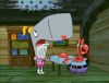 The Thing: After a freak bicycling accident, Squidward is coated in so much mud, leaves, branches and gunk to make him totally unrecognizable. The residents of Bikini Bottom think that Squidward is some sort of monster come to terrorize the town. But SpongeBob thinks he's kind of cute, so he adopts Squidward and tries to raise him as his pet. Hocus Pocus: After practicing all day with his brand new magic kit, SpongeBob tries to impress Squidward with his newfound abilities. Of course Squidward, being the ever reluctant participant, sneaks away without SpongeBob noticing. But what SpongeBob does catch is the ice-cream cone that was left in Squidward's place. Now SpongeBob is panicked and under the impression that he turned his neighbor into the frozen dessert.