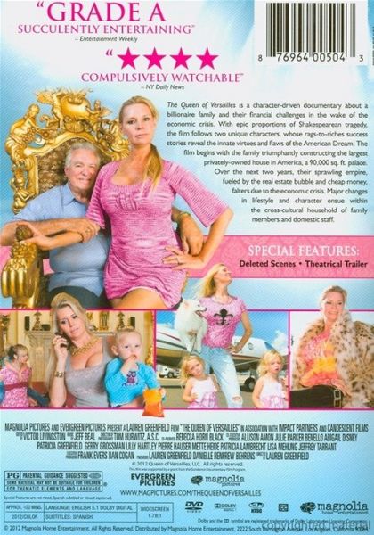 With the epic dimensions of a Shakespearean tragedy, The Queen of Versailles follows billionaires Jackie and David’s rags-to-riches story to uncover the innate virtues and flaws of their American dream. We open on the triumphant construction of the biggest house in America, a sprawling, 90,000-square-foot mansion inspired by Versailles. Since a booming time-share business built on the real-estate bubble is financing it, the economic crisis brings progress to a halt and seals the fate of its owners. We witness the impact of this turn of fortune over the next two years in a riveting film fraught with delusion, denial, and self-effacing humor.