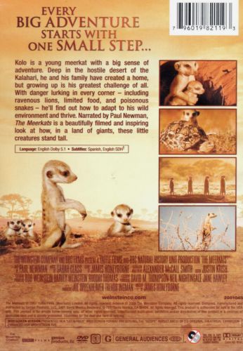 A coming of age story following a young meerkat pup, Kolo, growing up in the Kalahari desert; and an inspiring look at how one family's connection to each other and their surroundings is a model of resilience and fortitude for us all. Shot using ground-breaking techniques, this dramatised documentary is a one-of-a-kind presentation from The Weinstein Company and the BBC, featuring narration by Paul Newman.