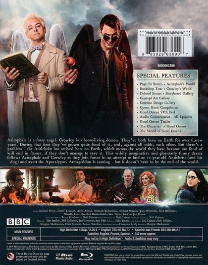 We follow Aziraphale and Crowley's friendship across the ages. Meanwhile, in the present day, Agnes Nutter's descendant Anathema arrives in Tadfield on her own mission to save the world.