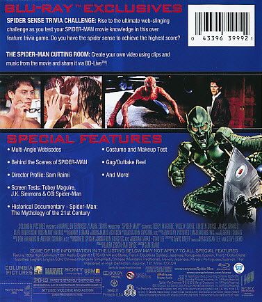| Extras | • Multi-Angle Webisodes • Behind the Scenes of SPIDER-MAN • Director Profile: Sam Raimi • Screen Tes |
