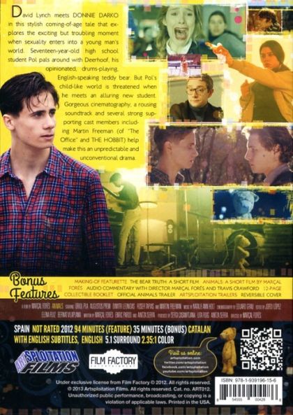 Pol is a teenager with a seemingly calm life: he lives with his brother and is still in high school. However, Pol has a secret: Deerhoof, a cuddly teddy bear who thinks, moves around and with whom he shares his best moments. Life goes on as normal until the arrival of Ikari, an enigmatic student who seems to be hiding something. Pol is fascinated by his new classmate and attracted to the dark side he harbors. An inexplicable death and a series of strange events will transform the meek student's routine into a fantastic adventure which will take over their lives. Animals is a story of teenage love, of sacrifice, of the tragedy of two clashing worlds. A Tale in which the power of imagination blurs it´s borders with reality and where death turns out to be an ending as tempting as inevitable.