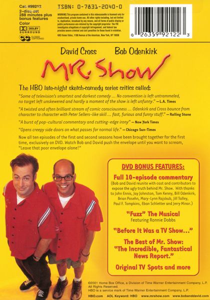 Mr. Show was the insanely funny, critically loved but HBO-loathed sketch comedy that ran on the channel for 4 years from 1995-1998. The show was created, executive produced, written and starred comics/writers Bob Odenkirk and David Cross. The show also starred Tom Kenny, Jill Talley and John Ennis. Featured performers/writers included Paul F. Tompkins, Jerry Minor, B.J. Porter, Scott Aukerman, Brian Posehn, and Jay Johnston. Featured performers included Mary-Lynn Rajskub, Brett Paesal, and Sarah Silverman. The show has spawned a movie based on popular character Ronnie Dobbs in Run Ronnie Run. All four seasons are now on DVD. Bob's wife, Naomi Odenkirk, has compiled everything you could ever want to know about the show in her wonderful book, Mr. Show: What Happened.