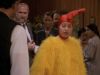 Ellen gets off on the wrong foot with her new neighbors, a immigrant couple from India, named the Patels, when a variety of circumstances conspire to make Ellen look like a fool in front of them which includes Ellen and Paige trying to fix Ellen's leaky roof with a Twister mat, and Ellen struggling with Joe's inflatable doll. But the final humiliation comes when Ellen gets stuck outside her house dressed in a chicken costume before she goes out for the evening with Paige for Joe's birthday party.