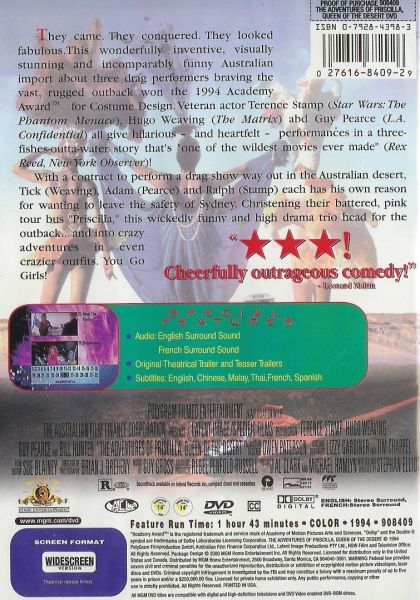 Two drag-queens and a transsexual contract to perform a drag show at a resort in Alice Springs, and head west from Sydney aboard their lavender bus, named 'Priscilla'. En route, they discover that the woman they've contracted with is the wife of one of the drag queens. Their bus breaks down, and is repaired by Bob, who then travels on with them.