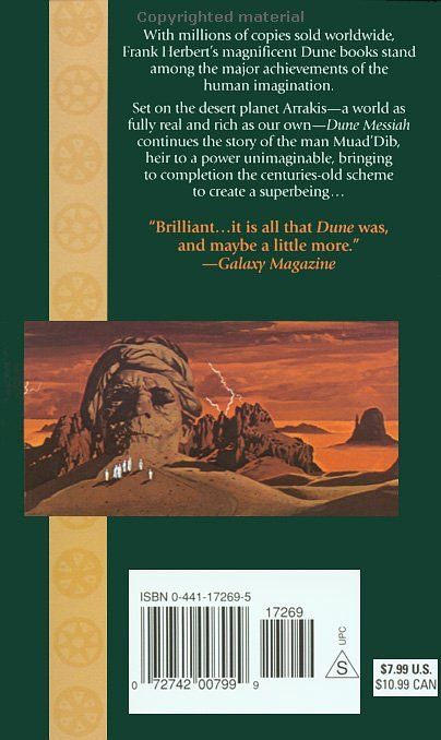 It has been 12 years since Paul Muad'Dib's Fremen forces overthrew the Padishah Emperor. Since then, the fanatical Jihad, headed by the Fremen Fedaykin, has become a juggernaut, destroying all in its path. Sitting uneasily upon a religious and Imperial throne, Paul fights relentlessly against the horrors of absolute prediction, unwilling to accept and unable to change the future in which he is trapped. A powerful oracular being hides from him a dangerous conspiracy, of which one of his own household is a member. Paul's sister, Alia, is now worshipped as a saint; but as she comes of age she, too, is betrayed by friends and beset by enemies. In the midst of this comes a gift from the Tleilaxu - one which Paul knows may bring about his own downfall. The gift is a ghola named Hayt, grown from the cells of his long-dead teacher and friend, Duncan Idaho. Unable to refuse, Paul welcomes the gift cautiously. As his prescient visions increasingly reveal to him a terrifying future, he struggles to change the path; yet his choices show him only horrible losses, or the destruction of all humankind. All the while, the conspirators, each with their own unspoken agenda, continue with their plans to destroy the Atreides, and to control the Spice for once and for all.