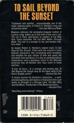 Bestselling author Robert A. Heinlein's autobiographical masterpiece--a wondrous return to the alternate universes that all Heinlein fans have come to know and love. Maureen Johnson, the somewhat irregular mother of Lazarus Long, wakes up in bed with a man and a cat. The cat is Pixel, well-known to readers of the New York Times bestseller The Cat Who Walks Through Walls. The man is a stranger to her, and besides that, he is dead... Filled with the master's most beloved characters, To Sail Beyond the Sunset broadens and enriches Heinlein's epic visions of time and space, life and death, love and desire...