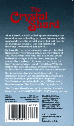 “Akar Kessel, a weak‑willed apprentice mage, sets in motion events leading to the rediscovery of the magical device, the Crystal Shard. But is it merely an inanimate device . . . or is it capable of directing the defeat of Ten‑Towns?