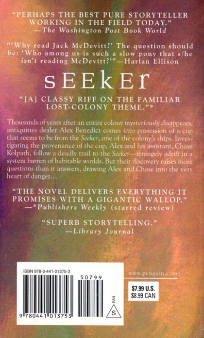 "Near the end of the twenty-seventh century, when the interstellar age was just dawning, two ships set out from Earth to escape the fascist theocracy that had taken over North America. One was the Bremerhaven, the other the Seeker. On a distant planet, the voyagers established a colony they named Margolia. Then they and the colony disappeared from recorded history." "Thousands of years later, the legendary status of Margolia has made it the new Atlantis - and of special interest to antiquities dealer Alex Benedict when he comes into possession of a cup that seems to be from the Seeker. Investigating the provenance of the cup, Alex and Chase Kolpath follow a deadly trail to the Seeker - strangely adrift in a system barren of habitable worlds. But their discovery raises more questions than it answers, drawing Alex and Chase into the center of the mystery that is Margolia - and into the very heart of danger."--Publisher.