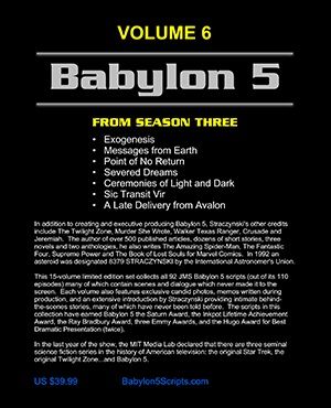 This volume also includes the scripts for the most important trilogy of episodes in the third season (some might even say in the entire series) of Babylon 5: the Earth Civil War trilogy of "Messages from Earth," "Point of No Return," and "Severed Dreams," which became Babylon 5's second Hugo-winning episode.