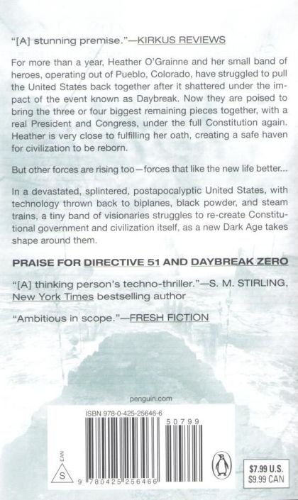 For more than a year, Heather O’Grainne and her small band of heroes, operating out of Pueblo, Colorado, have struggled to pull the United States back together after it shattered under the impact of the event known as Daybreak. Now they are poised to bring the three or four biggest remaining pieces together, with a real President and Congress, under the full Constitution again. Heather is very close to fulfilling her oath, creating a safe haven for civilization to be reborn. But other forces are rising too—forces that like the new life better... In a devastated, splintered, postapocalyptic United States, with technology thrown back to biplanes, black powder, and steam trains, a tiny band of visionaries struggles to re-create Constitutional government and civilization itself, as a new Dark Age takes shape around them.