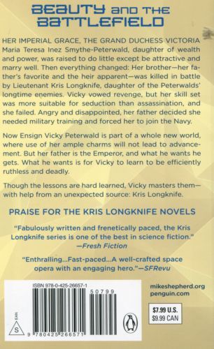 BEAUTY AND THE BATTLEFIELD Her Imperial Highness the Grand Duchess Victoria Maria Teresa Inez Smythe-Peterwald, daughter of wealth and power, was raised to do little except be attractive and marry well. Then everything changed—her brother, her father’s favorite and the heir apparent, was killed in battle by Lieutenant Kris Longknife, daughter of the Peterwald’s longtime enemies. Vicky vowed revenge, but her skill set was more suitable for seduction than assassination, and she failed. Angry and disappointed, her father decided she needed military training and forced her to join the Navy. Now Ensign Vicky Peterwald is part of a whole new world, where use of her ample charms will not lead to advancement. But her father is the Emperor, and what he wants he gets. What he wants is for Vicky to learn to be efficiently ruthless and deadly. Though the lessons are hard learned, Vicky masters them—with help from an unexpected source: Kris Longknife.