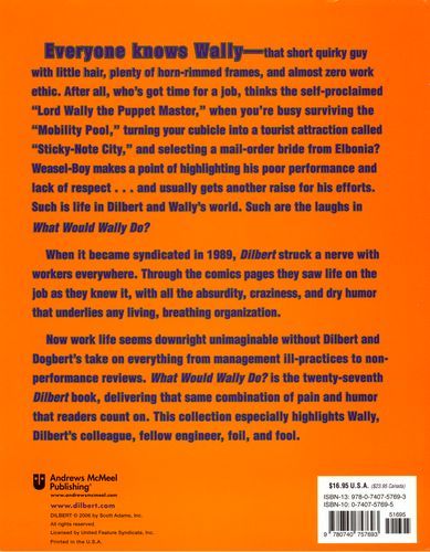What would the world of work be like without Dilbert? Downright insufferable!When it became syndicated in 1989, Dilbert struck a nerve with workers everywhere. Through its frames they saw life on the job as they knew it, with all the absurdity, craziness, and dry humor that underlies any living, breathing organization. The fact that the strip focused on a hapless engineer and his cynical dog just made it all the more funny.Now work life seems downright unimaginable without Dilbert and Dogbert's take on everything from management ill-practices to nonperformance reviews. What Would Wally Do?, delivers that same combination of pain and humor that readers count on. This collection especially highlights Wally, Dilbert's colleague, fellow engineer, foil, and fool. Wally's that short quirky guy with little hair, plenty of horn-rimmed frames, and almost zero work ethic. After all, who's got time for a job, thinks the self-proclaimed "Lord Wally the Puppet Master," when you're busy surviving the "Mobility Pool," turning your cubicle into a tourist attraction called "Sticky-Note City," and selecting a mail-order bride from Elbonia? Weasel-Boy makes a point of highlighting his poor performance and lack of respect . . .and usually gets another raise for his efforts. Such is life in Dilbert and Wally's world. Such are the laughs in What Would Wally Do?