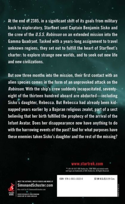 Continuing the Deep Space Nine saga—an original novel from New York Times bestselling author David R. George III!At the end of 2385, in a significant shift of its goals from military back to exploratory, Starfleet sent Captain Benjamin Sisko and the crew of the U.S.S. Robinson on an extended mission into the Gamma Quadrant. Tasked with a yearlong assignment to travel unknown regions, they set out to fulfill the heart of Starfleet’s charter: to explore strange new worlds, and to seek out new life and new civilizations. But now three months into the mission, their first contact with an alien species comes in the form of an unprovoked attack on the Robinson. With the ship’s crew suddenly incapacitated, seventy-eight of the 1,300 aboard are abducted—including Sisko’s daughter, Rebecca. But Rebecca had already been kidnapped years earlier by a Bajoran religious zealot, part of a sect believing that her birth fulfilled the prophecy of the arrival of the Infant Avatar. Does her disappearance now have anything to do with the harrowing events of the past? And for what purposes have these enemies taken Sisko’s daughter and the rest of the missing?