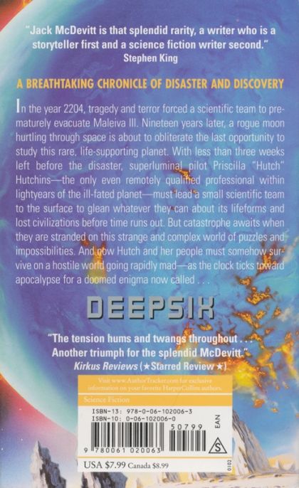 In the year 2204, tragedy and terror forced a scientific team to prematurely evacuate Maleiva III. Nineteen years later, a rogue moon hurtling through space is about to obliterate the last opportunity to study this rare, life-supporting planet. With less than three weeks left before the disaster, superluminal pilot Priscilla "Hutch" Hutchins -- the only even remotely qualified professional within lightyears of the ill-fated planet -- must lead a small scientific team to the surface to glean whatever they can about its lifeforms and lost civilizations before time runs out. But catastrophe awaits when they are stranded on this strange and complex world of puzzles and impossibilities. And now Hutch and her people must somehow survive on a hostile world going rapidly mad -- as the clock ticks toward apocalypse for a doomed enigma now called...