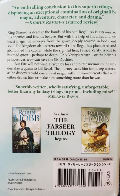 “An enthralling conclusion to this superb trilogy, displaying an exceptional combination of originality, magic, adventure, character, and drama.”—Kirkus Reviews (starred review)King Shrewd is dead at the hands of his son Regal. As is Fitz—or so his enemies and friends believe. But with the help of his allies and his beast magic, he emerges from the grave, deeply scarred in body and soul. The kingdom also teeters toward ruin: Regal has plundered and abandoned the capital, while the rightful heir, Prince Verity, is lost to his mad quest—perhaps to death. Only Verity’s return—or the heir his princess carries—can save the Six Duchies. But Fitz will not wait. Driven by loss and bitter memories, he undertakes a quest: to kill Regal. The journey casts him into deep waters, as he discovers wild currents of magic within him—currents that will either drown him or make him something more than he was. Praise for Robin Hobb and Assassin’s Quest “Fantasy as it ought to be written . . . Robin Hobb’s books are diamonds in a sea of zircons.”—George R. R. Martin “Superbly written, wholly satisfying, unforgettable: better than any fantasy trilogy in print—including mine!”—Melanie Rawn