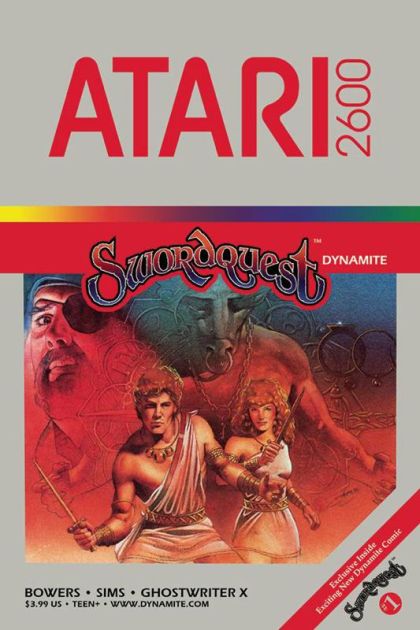 The Atari Age returns to comics with the most unexpected story of the year: SwordQuest! In 1984, Peter Case was on his way to being crowned champion of SwordQuest, set to win the last of four contests and lay claim to a golden sword worth over $50,000! But when the game was discontinued, Peter found himself without a game to finish. Now, over thirty years later, Peter's stuck in a different kind of game entirely - the game of life - and he's losing fast. But when he learns that all the prizes meant for the SwordQuest contest of his youth are on display in the World Arcade Museum, he finds an unknown determination that sees him put together a team of like-minded losers for the ultimate heist job - a real-life swordquest! The red-hot team of Chris Sims, Chad Bowers, and Ghostwriter X (Down Set Fight) have a new game - and the stakes have never been higher!