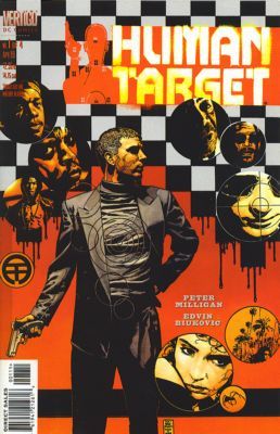 One of DC's signature characters from the 1970s is reinvented with a VERTIGO twist. Christopher Chance is the silky-smooth--but lethal--master of impersonation known as the Human Target. When Chance embarks on a routine case, he discovers that there's a bounty on the Human Target himself, and a lethal female assassin intends to collect it. And Christopher Chance may not be exactly who he thinks he is. Written by Peter Milligan. Art by Edvin Biukovic. Painted cover by Tim Bradstreet. Mature Readers. FC, 32 pg. Cover price $2.95.