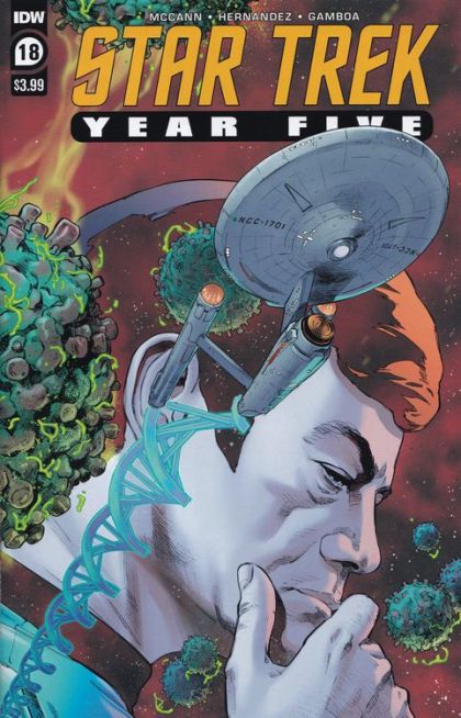 The Enterprise receives a distress call from Alpha Centauri and arrives to find a planet in the midst of a deadly global pandemic. But is nature responsible for this new virus, or is there something more sinister at play? The final voyages of the U.S.S. Enterprise continue in this new episode from Eisner-winning writer Jim McConn (Return of the Dapper Men) and superstar artist Angel Hernandez (Star Trek: Picard).