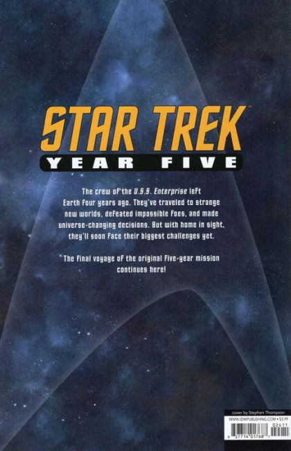 Their journey has taken them to the edge of the known universe and beyond. They've faced down impossible odds, conquered incredible enemies, and now, here in the shadow of home, their mission will come to an end... and nothing will ever be the same. The crew of the Enterprise will put it all on the line in the grand finale of Star Trek: Year Fiv,e from showrunners Jackson Lanzing & Collin Kelly (Gotham City Garage, Green Arrow) and artist Stephen Thompson (Satellite Falling, Die Hard: Year One).