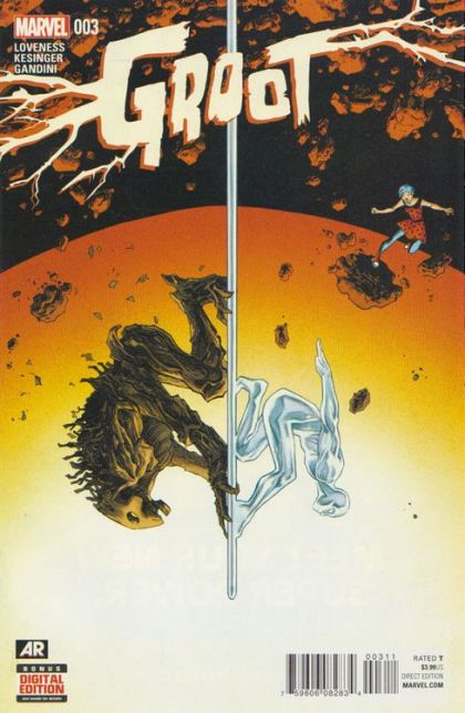 ALONE AND ADRIFT, Groot's got nobody to turn to now that his best pal Rocket Raccoon has been kidnapped! What's worse, cosmic calamity continues to strike, and when a cosmic storm threatens to destroy an entire world, it's up to Groot to stop it - but he can't do it alone! Featuring special guest stars DAWN GREENWOOD AND THE SILVER SURFER!