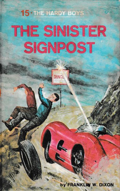 It all starts when their father, Fenton Hardy, is engaged by an experimental race car and motor designer to investigate a series of mysterious accidents. Three of his drivers have crashed because the windshields of their cars were suddenly crazed, thus cutting off forward vision. Frank and Joe uncover one slim clue. Each of the drivers had seen a signpost marked DANGER shortly before the accident. The young detectives investigate, only to discover that the signposts have vanished. What happened to them? And what sinister purpose did they serve?