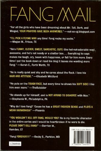 Angel says that Fang will be the first to die, and Angel is never wrong. Maximum Ride is used to living desperately on the run from evil forces sabotaging her quest to save the world--but nothing has ever come as close to destroying her as this horrifying prophetic message. Fang is Max's best friend, her soul mate, her partner in the leadership of her flock of winged children. A life without Fang is a life unimaginable.When a newly created winged boy, the magnificent Dylan, is introduced into the flock, their world is upended yet again. Raised in a lab like the others, Dylan exists for only one reason: he was designed to be Max's perfect other half. Thus unfolds a battle of perfection versus passion that terrifies, twists, and turns . . . and meanwhile, the apocalypse is coming. [BB1]thin spaces around em-dash