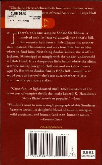 Bon Temps’s psychic waitress takes a dangerous road trip in the third novel in the #1 New York Times bestselling Sookie Stackhouse series—the inspiration for the HBO® original series True Blood. There’s only one vampire Sookie Stackhouse is involved with (at least voluntarily) and it’s Bill Compton. But recently he’s been a little distant—in another state, distant. Then his sinister and sexy boss Eric Northman tells Sookie where she might find him. Next thing she knows, she’s off to Jackson, Mississippi, to mingle with the under-underworld at Club Dead, a dangerous little haunt where the elite of vampire society can go to chill out and suck down some Type-O. But when Sookie finally finds Bill—caught in an act of serious betrayal—she’s not sure whether to save him...or sharpen some stakes.