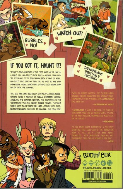 If you got it, haunt it!Trying to take advantage of the first quiet day at camp in a while, Mal and Molly's date takes a bizarre turn with the appearance of the bear woman! Back at camp, Jo, April, and Ripley must stay on their toes as they try to earn every badge possible which ends up being a lot harder than any of them ever planned. This New York Times bestseller and multiple Eisner Award-winning series is written by ND Stevenson (Nimona) and Shannon Watters, and illustrated by Carolyn Nowak (Rungs). Featuring spooky guest talent Faith Erin Hicks (Friends with Boys), Brittney Williams (Patsy Walker AKA Hellcat), Felicia Choo, and more.
