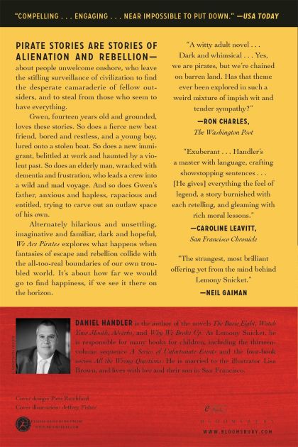 A boat has gone missing. Goods have been stolen. There is blood in the water. It is the twenty-first century and a crew of pirates is terrorizing the San Francisco Bay.Phil is a husband, a father, a struggling radio producer, and the owner of a large condo with a view of the water. But he'd like to be a rebel and a fortune hunter.Gwen is his daughter. She's fourteen. She's a student, a swimmer, and a best friend. But she'd like to be an adventurer and an outlaw.Phil teams up with his young, attractive assistant. They head for the open road, attending a conference to seal a deal.Gwen teams up with a new, fierce friend and some restless souls. They head for the open sea, stealing a boat to hunt for treasure.We Are Pirates is a novel about our desperate searches for happiness and freedom, about our wild journeys beyond the boundaries of our ordinary lives. Also, it's about a teenage girl who pulls together a ragtag crew to commit mayhem in the San Francisco Bay, while her hapless father tries to get her home.