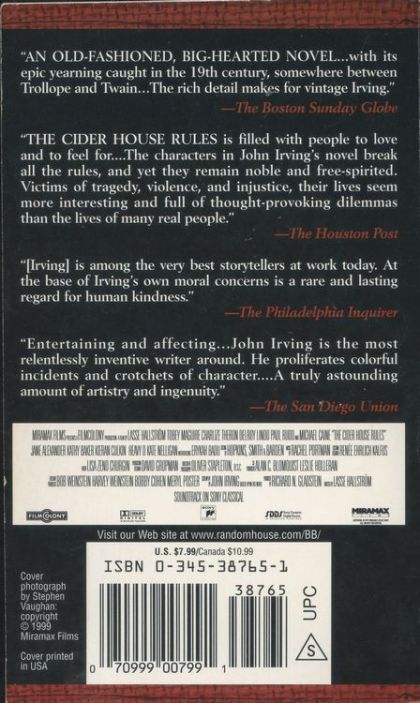 "AN OLD-FASHIONED, BIG-HEARTED NOVEL . . . with its epic yearning caught in the 19th century, somewhere between Trollope and Twain . . . The rich detail makes for vintage Irving." --The Boston Sunday Globe "The Cider House Rules is filled with people to love and to feel for. . . . The characters in John Irving's novel break all the rules, and yet they remain noble and free-spirited. Victims of tragedy, violence, and injustice, their lives seem more interesting and full of thought-provoking dilemmas than the lives of many real people." --The Houston Post "John Irving's sixth and best novel . . . He is among the very best storytellers at work today. At the base of Irving's own moral concerns is a rare and lasting regard for human kindness." --The Philadelphia Inquirer "Entertaining and affecting . . . John Irving is the most relentlessly inventive writer around. He proliferates colorful incidents and crotchets of character. . . . A truly astounding amount of artistry and ingenuity." --The San Diego Union