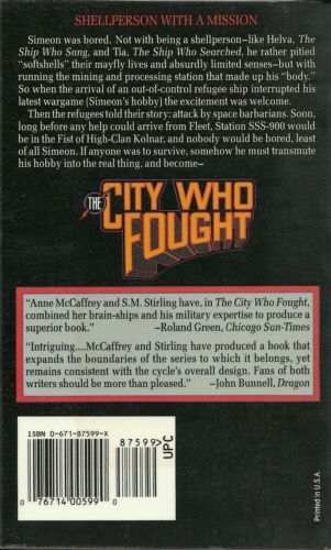 SHELLPERSON WITH A MISSIONSimeon was bored. Not with being a shellperson -- like Helva, The Ship Who Sang, and Tia, The Ship Who Searched, he rather pitied "softshells" their mayfly lives and absurdly limited senses -- but with running the mining and processing station that made up his "body." So when the arrival of an out-of-control refugee ship interrupted his latest wargame (Simeon's hobby) the excitement was welcome.Then the refugees told their story: attack by space barbarians. Soon, long before any help could arrive from Fleet, Station SSS-900 would be in the Fist of High-Clan Kolnar, and nobody would be bored, least of all Simeon. If anyone was to survive, somehow he must transmute his hobby into the real thing, and become --