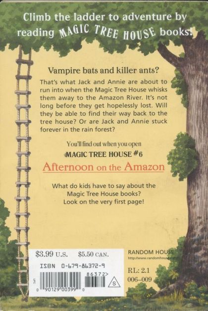 The #1 bestselling chapter book series of all time celebrates 25 years with new covers and a new, easy-to-use numbering system! Vampire bats and killer ants? That's what Jack and Annie are about to run into when the Magic Tree House whisks them away to the Amazon River. It's not long before they get hopelessly lost. Will they be able to find their way back to the tree house? Or are Jack and Annie stuck forever in the rain forest? Did you know that there’s a Magic Tree House book for every kid? Magic Tree House: Adventures with Jack and Annie, perfect for readers who are just beginning chapter books Merlin Missions: More challenging adventures for the experienced reader Super Edition: A longer and more dangerous adventure Fact Trackers: Nonfiction companions to your favorite Magic Tree House adventures