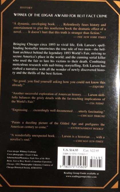 #1 NATIONAL BESTSELLER • NATIONAL BOOK AWARD FINALIST • From the #1 New York Times bestselling author of The Splendid and the Vile comes the true tale of the 1893 World's Fair in Chicago and the cunning serial killer who used the magic and majesty of the fair to lure his victims to their death. “As absorbing a piece of popular history as one will ever hope to find.” —San Francisco ChronicleA Kirkus Reviews Best Nonfiction Book of the Century • A Los Angeles Times Best Nonfiction Book of the Last 30 YearsCombining meticulous research with nail-biting storytelling, Erik Larson has crafted a narrative with all the wonder of newly discovered history and the thrills of the best fiction.Two men, each handsome and unusually adept at his chosen work, embodied an element of the great dynamic that characterized America’s rush toward the twentieth century. The architect was Daniel Hudson Burnham, the fair’s brilliant director of works and the builder of many of the country’s most important structures, including the Flatiron Building in New York and Union Station in Washington, D.C. The murderer was Henry H. Holmes, a young doctor who, in a malign parody of the White City, built his “World’s Fair Hotel” just west of the fairgrounds—a torture palace complete with dissection table, gas chamber, and 3,000-degree crematorium. Burnham overcame tremendous obstacles and tragedies as he organized the talents of Frederick Law Olmsted, Charles McKim, Louis Sullivan, and others to transform swampy Jackson Park into the White City, while Holmes used the attraction of the great fair and his own satanic charms to lure scores of young women to their deaths. What makes the story all the more chilling is that Holmes really lived, walking the grounds of that dream city by the lake.The Devil in the White City draws the reader into the enchantment of the Guilded Age, made all the more appealing by a supporting cast of real-life characters, including Buffalo Bill, Theodore Dreiser, Susan B. Anthony, Thomas Edison, Archduke Francis Ferdinand, and others. Erik Larson’s gifts as a storyteller are magnificently displayed in this rich narrative of the master builder, the killer, and the great fair that obsessed them both.