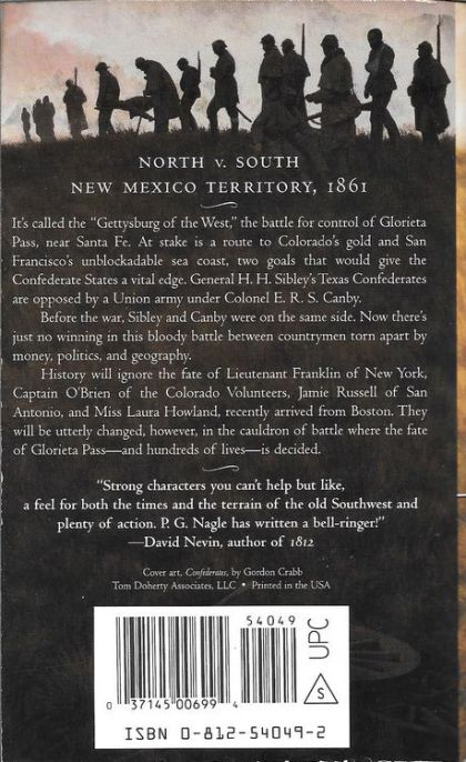 It's called the "Gettysburg of the West,", the battle for control of Glorieta Pass, near Santa Fe. At stake is a route to Colorado's gold and San Francisco's unblockadable sea coast, two goals that would give the Confederate States a vital edge. General H.H. Sibley's Texas Confederates are opposed by a Union army under Colonel E.R.S. Canby.Before the war, Sibley and Candby were on the same side. Now there's just no winning in this bloody battle between countrymen torn apart by money, politics, and geography.History will ignore the fate of Lieutenant Franklin of New York, Captain O'Brien of the Colorado Volunteers, Jamie Russell of San Antonio, and Miss Laura Howland, recently arrived from Boston. They will be utterly changed, however, in the cauldron of battle where the fate of Glorieta Pass--and hundreds of lives--is decided.