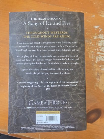 Reissued for September 2011 in B format. George R. R. Martin's superb fantasy epic continues in consummate style as bloodshed and alchemy lay waste the Seven Kingdoms in the second volume of A Song of Ice and Fire. Reissued for September 2011 in B format. George R. R. Martin's superb fantasy epic continues in consummate style as bloodshed and alchemy lay waste the Seven Kingdoms in the second volume of A Song of Ice and Fire. The Iron Throne once united the Sunset Lands, but King Robert is dead, his widow is a traitor to his memory, and his surviving brothers are set on a path of war amongst themselves. At King's Landing, the head of Lord Eddard Stark rots on a spike for all to see. His daughter Sansa is betrothed still to his killer's son Joffrey -- Queen Cersei's son, though not the son of her late husband Robert. Even so, Joffrey is now a boy-king, Cersei is his regent, and war is inevitable. In Dragonstone, Robert's brother Stannis has declared himself king, while his other brother Renly proclaims himself king at Storm's End -- and Eddard Stark's fifteen year old son Robb wears the crown of the north at Winterfell. A comet in the night sky, red and malevolent, the colour of blood and flame, can only be an omen of murder and war. Stannis's child Princess Shireen dreams of dragons waking from stone. And a white raven has brought word from the Citadel itself, foretelling summer's end. It has been the longest summer in living memory, lasting ten years, and the smallfolk say it means an even longer winter to come! The first rule of war is never give the enemy his wish. But winter will be the biggest enemy. From beyond the Wall the undead and Others clamour for freedom, and from beyond the sea the long-dead Dragon King's daughter hatches her revenge. Robb Stark will be exceedingly lucky to reach adulthood.
