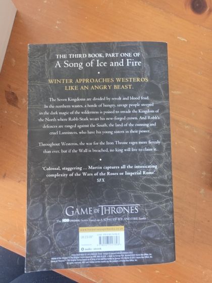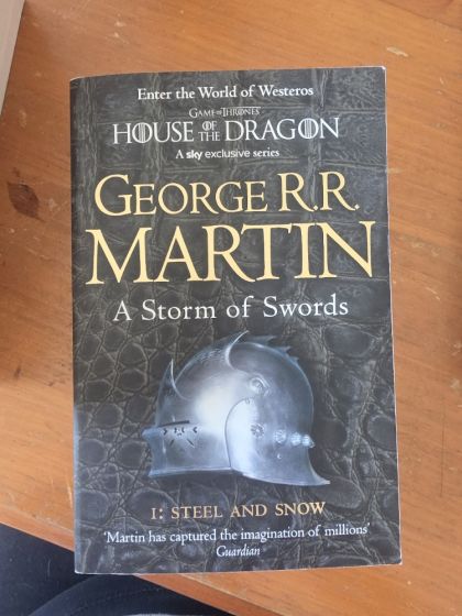 Of the five contenders for power, one is dead, another in disfavor, and still the wars rage as violently as ever, as alliances are made and broken. Joffrey, of House Lannister, sits on the Iron Throne, the uneasy ruler of the land of the Seven Kingdoms. His most bitter rival, Lord Stannis, stands defeated and disgraced, the victim of the jealous sorceress who holds him in her evil thrall. But young Robb, of House Stark, still rules the North from the fortress of Riverrun. Robb plots against his despised Lannister enemies, even as they hold his sister hostage at King's Landing, the seat of the Iron Throne. Meanwhile, making her way across a blood-drenched continent is the exiled queen, Daenerys, mistress of the only three dragons still left in the world. But as opposing forces maneuver for the final titanic showdown, an army of barbaric wildlings arrives from the outermost line of civilization. In their vanguard is a horde of mythical Others--a supernatural army of the living dead whose animated corpses are unstoppable. As the future of the land hangs in the balance, no one will rest until the Seven Kingdoms have exploded in a veritable storm of swords.