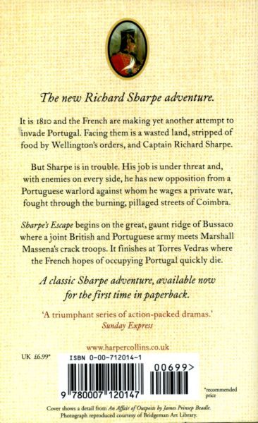 The twentieth instalment in the bestselling Sharpe series. It is 1810 and the French are making yet another attempt to invade Portugal. Facing them is a wasted land, stripped of food by Wellington's orders, and captain Richard Sharpe. But Sharpe is in trouble. His job as Captain of the Light Company is under threat and he has made a new enemy, a Portuguese criminal known as Ferragus. Sharpe, discarded by his regiment, wages a private war against Ferragus - a war fought through the burning, pillaged streets of Coimbra, Portugal's ancient university city. Sharpe's enemies are numerous but on his side he has Sergeant Patrick Harper, the Portuguese officer Jorge Vincent and a prickly English governess, whose first aim is to clean up Sharpe's language. Sharpe's Escape begins on the great, gaunt ridge of Bussaco where a joint British and Portuguese army meets the overwhelming strength of Marshall Massena's crack troops. It finishes at Torres Vedras where the French hopes of occupying Portugal quickly die. This is a classic Sharpe novel, with Richard Sharpe in his finest form reunited with Patrick Harper, and facing enemies on every side.