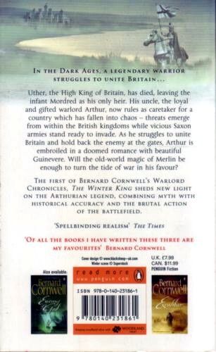 There was snow when Arthur's tale began. It was a lifetime ago, in the last year of High King Uther's reign ... However you count the years it was long ago, once upon a time, in a land called Britain, and I was there. Derfel, once a captain in Arthur's warband, recalls the dramatic days of wilful Guinevere, arrogant Lancelot, abstracted Merlin and intolerant Bishop Sansum, vying for mastery amid faction and bitter chaos. But, above all he tells the story of Arthur, royal bastard, unwise lover and inspired warlord, the only man who can hold Uther's throne for its infant heir and unite Britain's squabbling kingdoms against the enemy at their gates. Evoking the human realities behind the legends of romance and chivalry, Bernard Cornwell weaves a brutal, magnificent epic of war and love, magic and politics, as the old gods retreat before the spread of Christianity, and the Saxon invaders reach deeper into the heart of Britain ...