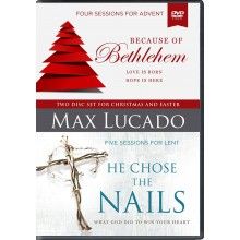 This is a 2-Disc set for Christmas and Easter from Max Lucado. Because of a Bethlehem is a 4-session study for Christmas; He Chose the Nails is a 5-session study for Lent or Easter. Each session is approximately 15 minutes and is designed to be used with its corresponding study guide.