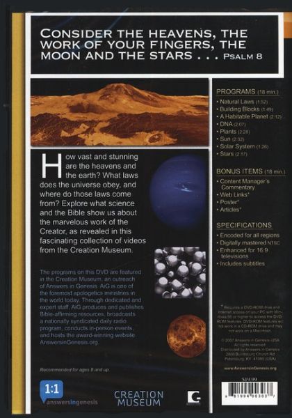 This amazing video from the Creation Museum highlights the beauty and majesty of God’s awe-inspiring handiwork throughout the seemingly endless universe. Contains 8 programs plus bonus content.