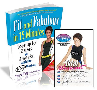 ABC TV in Philadelphia called the T-Tapp Total Workout "The Workout that Works" for all ages and fitness levels. This total body workout has a special sequence of comprehensive, compound muscle movements that use isometric linear alignment along with lymphatic pumping to deliver higher aerobic, strength, flexibility and body sculpting - as well as rehabilitative benefits to shoulders, back, hips and knees. Inches drop quickly since muscles are developed with density, not bulk, to cinch-in, uplift, tighten and tone. The Total Workoutalso teaches how to increase intensity without adding weights or repetitions so you can always challenge your body and get results with only one set of 8 repetitions. Less IS more with T-Tapp! The Total Workout delivers a full body program that not only builds a better body with optimal fitness and wellness, but helps you keep it for the rest of your life. The Total Workout is the entire workout featured in the book Fit and Fabulous in 15 Minutes.